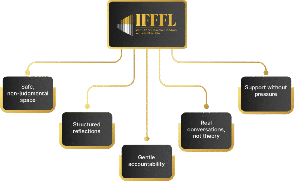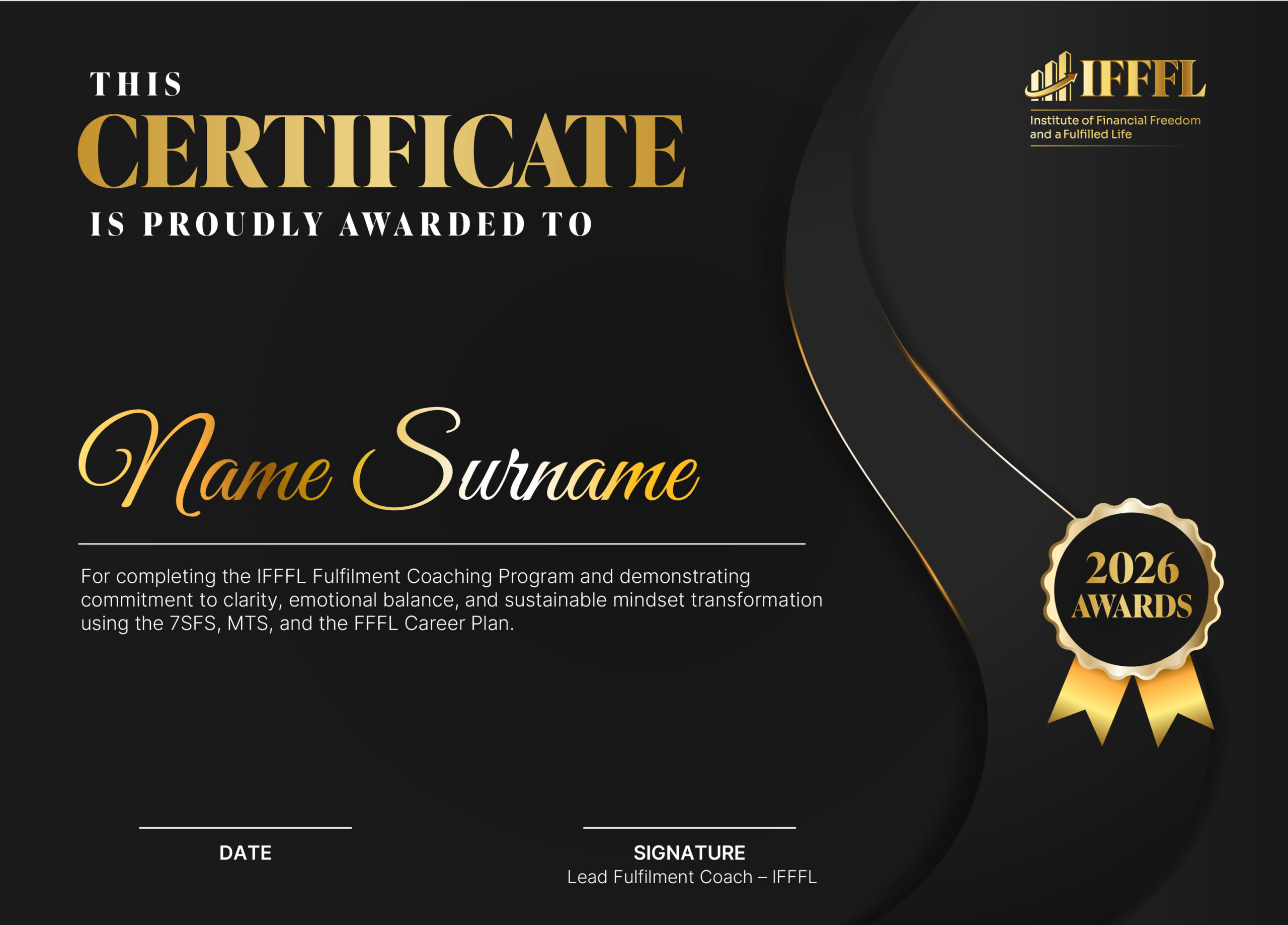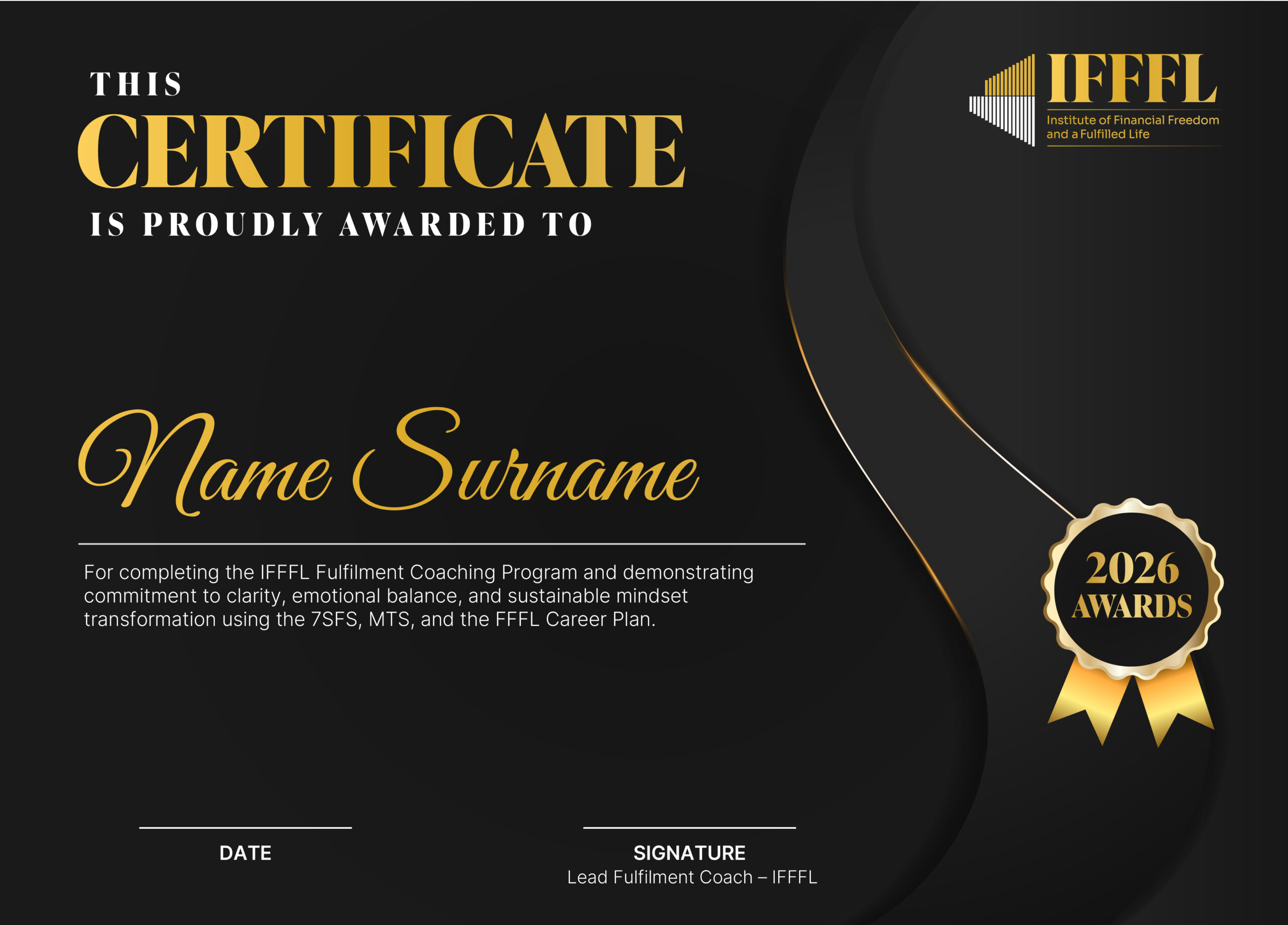 A structured and professionally guided fulfilment coaching program by the Institute of Financial Freedom & A Fulfilled Life (IFFFL), designed to help you build clarity, emotional balance, and long-term direction in both work and life.