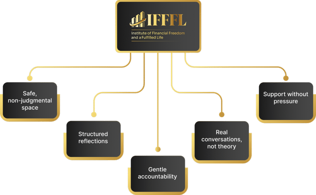 IFFFL stands for the Institute of Financial Freedom & A Fulfilled Life. It is a purpose-driven learning institute that helps individuals build clarity, emotional balance, and sustainable financial freedom using structured mindset and behavioural systems — not just motivation or self-help